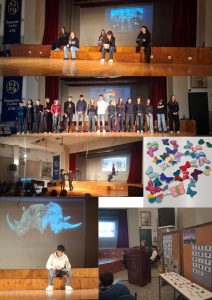 Οι μαθητές και οι μαθήτριές μας συγκλόνισαν με την ανάγνωση μαρτυριών επιζώντων των στρατοπέδων συγκέντρωσης, με τις μουσικές ερμηνείες, το τραγούδι και τον χορό, αλλά και με την ερμηνεία αποσπάσματος από το αντιφασιστικό θεατρικό έργο «Ρινόκερος» του Ευγένιου Ιονέσκο.